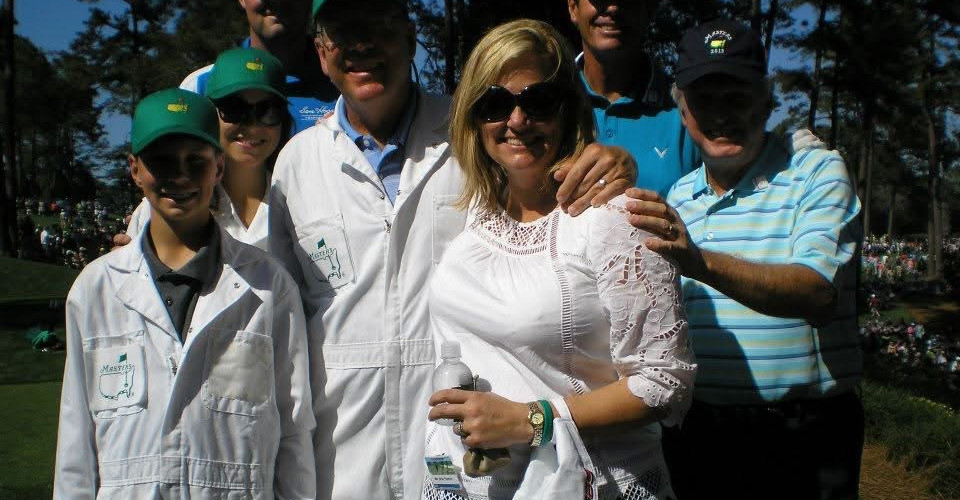 Years later. And twenty years ago this weekend. The longest rain delay in Masters history. And life changed forever. My friends and I met a group of Australians, one of whom was Richard. This handsome, blue eyed man from somewhere called the Hunter Valley!? in Australia!? was charming, entertaining, funny and kind. Three years later, we got engaged at the exact same place we had met-walking near the eighth green. We have had so many incredible times in Augusta-driving down Magnolia Lane, azaleas on the green, lunches in the clubhouse, viewing the action from the tv tower, richard caddying in the Par 3 contest. Memories to last a lifetime!